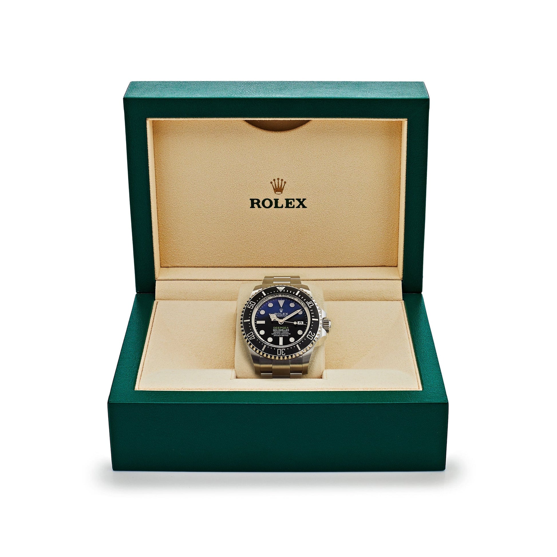 This new release model 2025 Watch Deepsea Sea-Dweller is crafted in an Oystersteel case measuring 44mm in diameter. Built?to withstand?depths of 12.000+ feet below surface. the?blue to black gradient dial embodies the essence of the big blue sea.?Chromalight hour markers and hands?are with luminescent material for maximum efficiency above and below the surface.