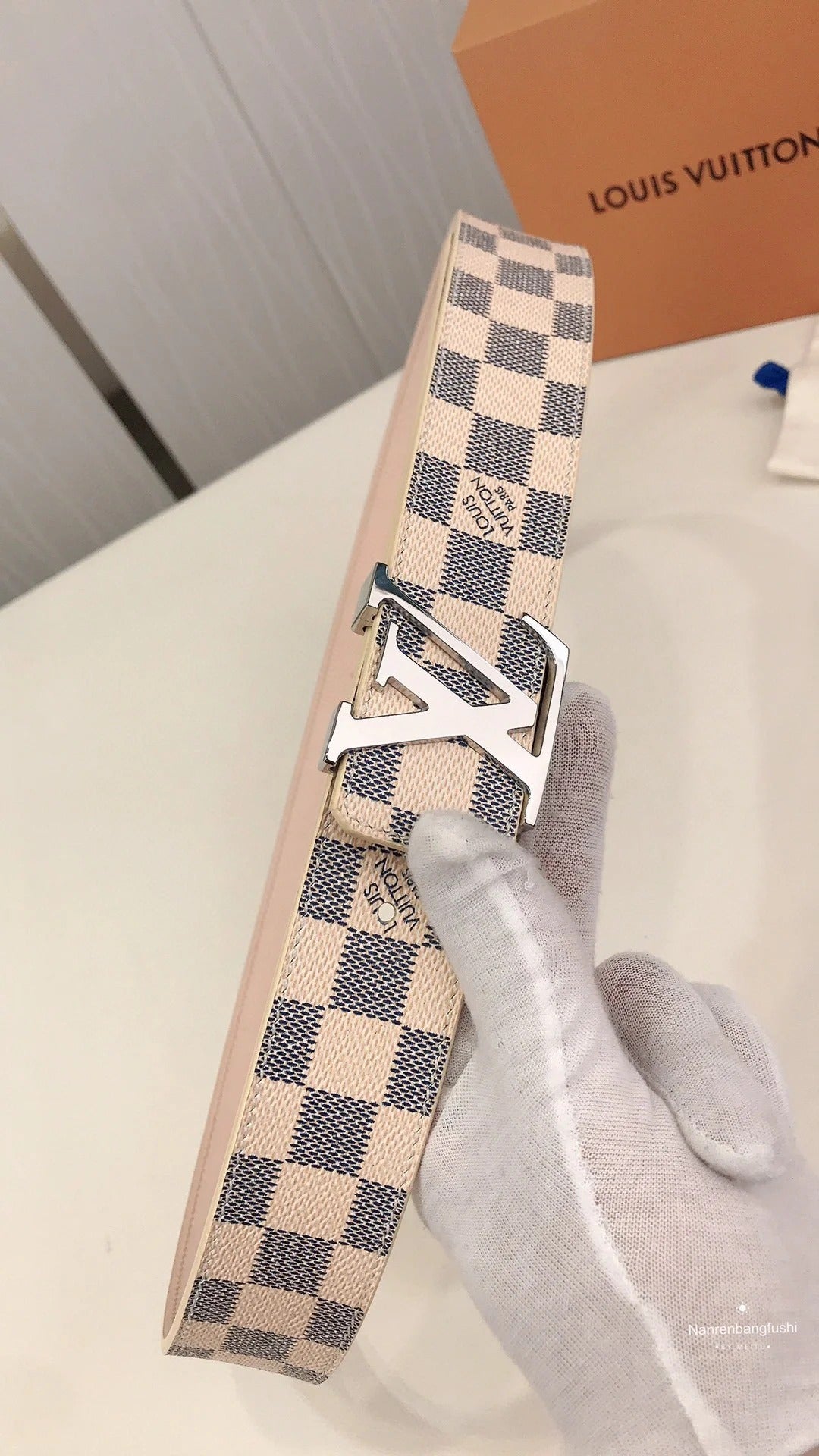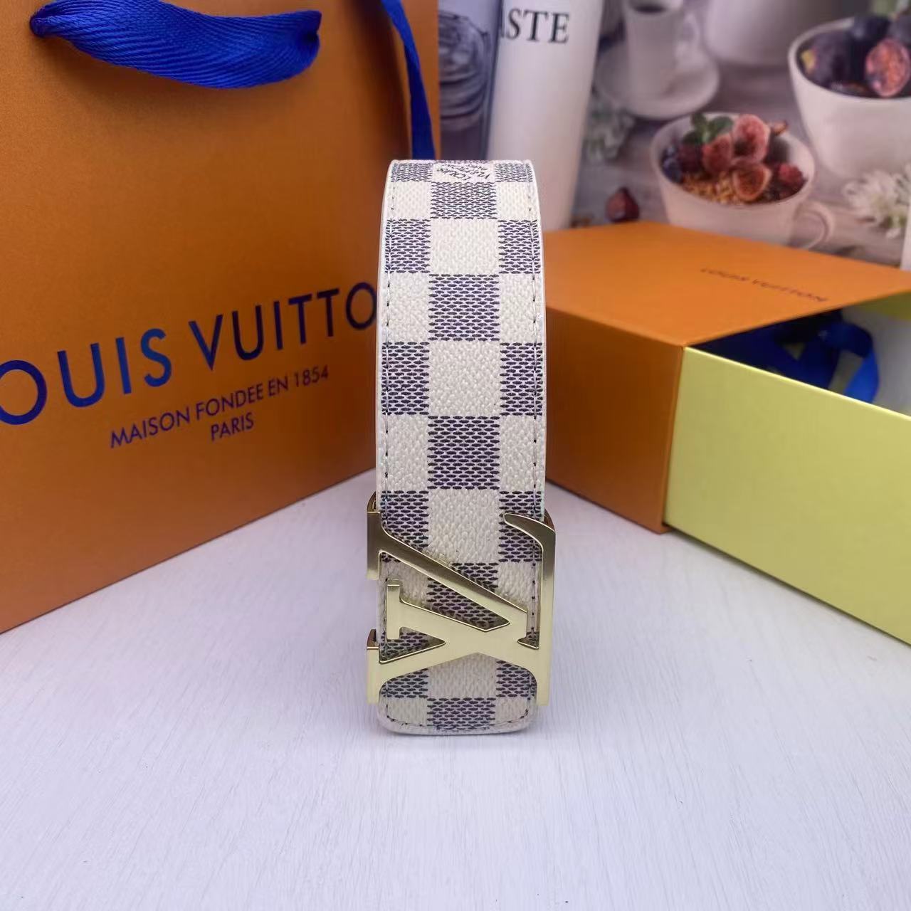 2025 Classic Silver Buckle White Plaid Men's Belt